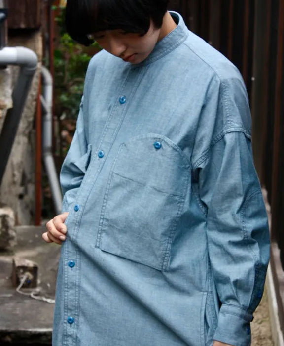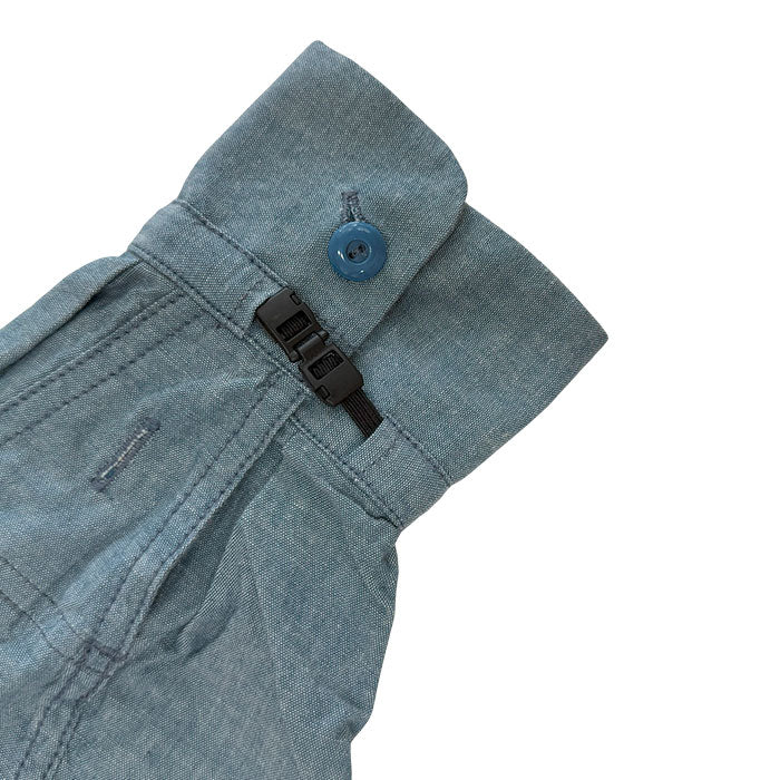 作業時や暑い季節に便利な袖口のアジャスターゴムが付いたつくりや、後ろ襟には実用的なハンガーループをプラス。日常の中でも気軽に引っ掛けてお使いいただけます。