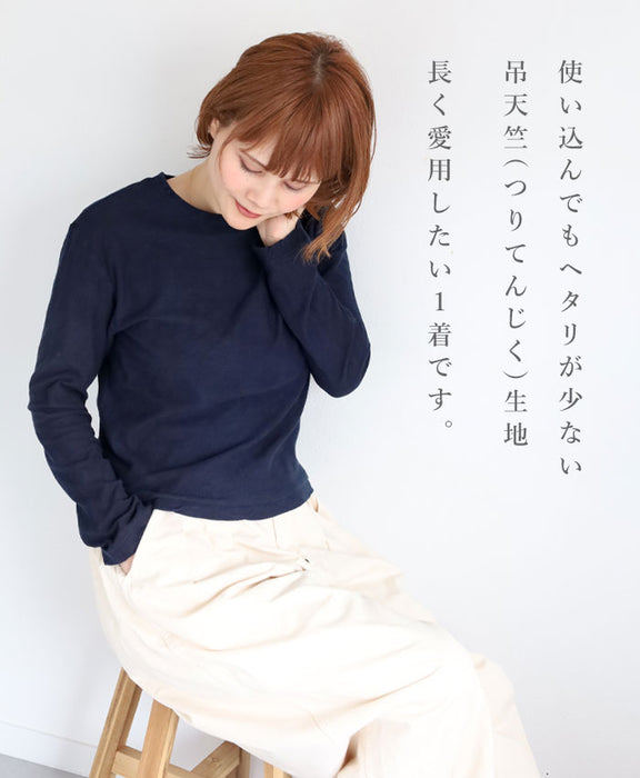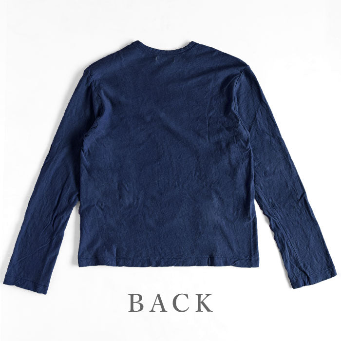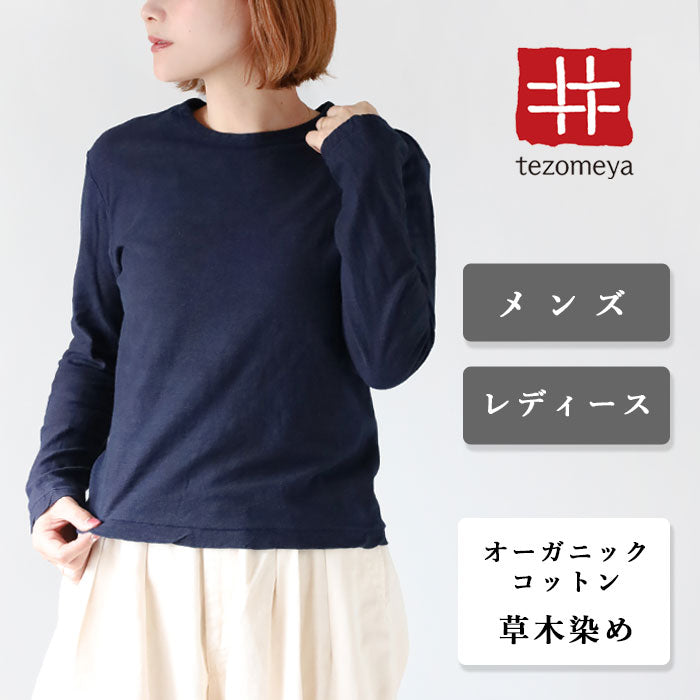 手染メ屋 手染め色無地 吊り編み天竺 オーガニックコットンTシャツ 長袖 “鉄紺色”(てつこんいろ) メンズ・レディース [OL-TET]
