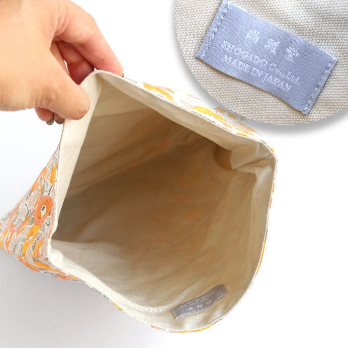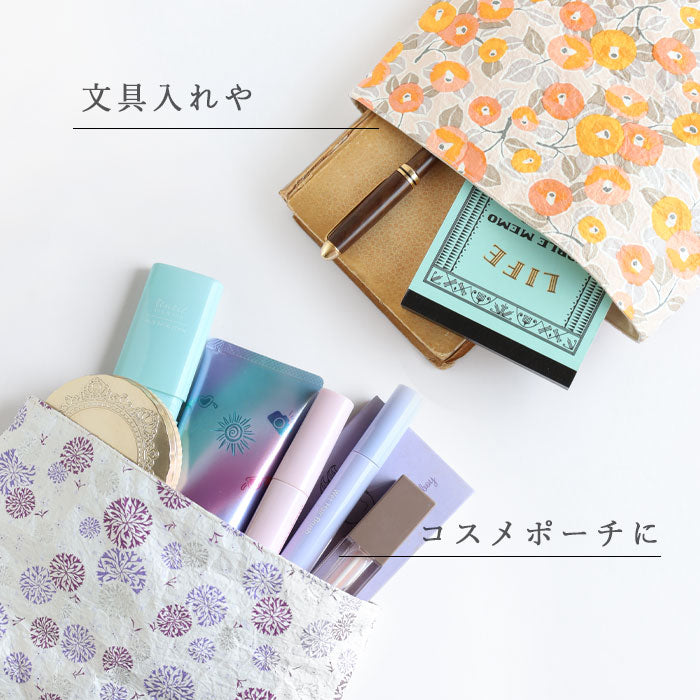 ファスナーなどの留め具は使わず、上部を折りたたむだけのクラッチバッグのような構造。さっと出し入れできて、扱いやすさも抜群です。御朱印帳に限らず、通帳や文庫本、ちょっとしたコスメなども収納できるので、使い方は自由自在。シンプルな袋型だからこそ、マルチポーチやバッグインバッグとしても活躍してくれます。