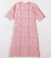 garageさんオリジナルのデザインのルームワンピース。切りっぱなしのフサフサで表現されたブロックチェックが優しい印象です。