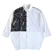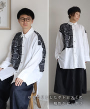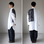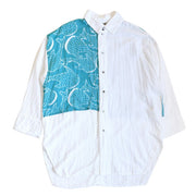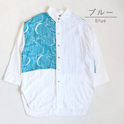 | ジンベイザメ柄がアクセントになった、遊び心のあるシャツ。 京都発テキスタイルブランドの手捺染生地を使用した、こだわりのコラボアイテムです。 |