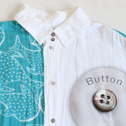 京都のテキスタイルブランド「スピカ模様店」の手捺染生地を使用した、ジンベイザメ柄のフラップシャツ。