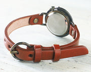 | ケースサイズは28mmで、レザーのベルトは華奢な9mm幅で、女性の腕にぴったりなサイズ感。カジュアルなスタイルにはもちろん、渋めのヴィンテージスタイルのアクセントにもおすすめです。 ベルトの先は、バックルやベルトループに通しやすいような形にデザインされています。ブラックやブラウンといったベーシックなベルトカラーをチョイスすれば、毎日のビジネススタイルにもよく合います。 |