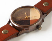 【文字盤の配置はおまかせ】 vie(ヴィー) 手作り腕時計 “simple wood 寄せ木文字盤” Lサイズ [WB-077L]