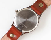 | 天然木を極薄に削り出した木製の文字盤のシンプルな手作り腕時計。天然木の独特の風あい・色あいは目にも優しく、落ち着いた気持ちにさせてくれます。真鍮製のケースはいぶし仕上げで、使い込むほどに味わいを増していきます。 自然のぬくもりを感じる木目の表情は一つ一つ異なり、世界に一つだけの腕時計となります。 使われている木の種類は、黒壇、シナ、ウォールナット。4種をぴたっとくっつけたその交点をランダムに切り取った文字盤で、作品によって配置やそれぞれの木製パーツの大きさが異なります。 |