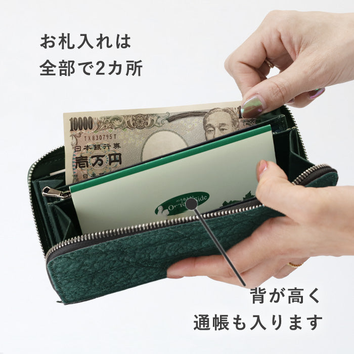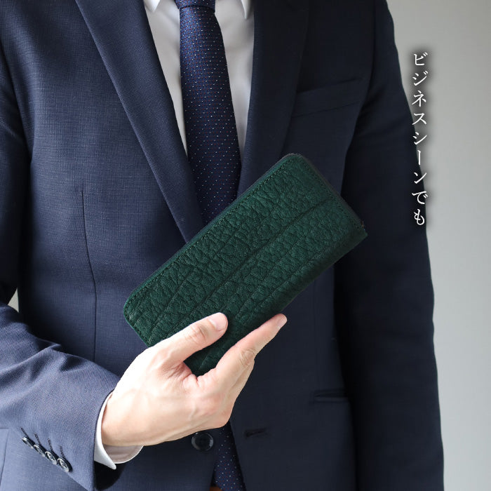 希少価値の高い「ゾウ」の革を使用した 通帳も入る 大容量のロングウォレット