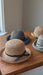 The brim of the hat is decorated with a ribbon in a soft color, giving it a simple yet sophisticated look.