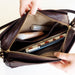 The main compartment has a top zipper (can be opened and closed from both sides), and open flap pockets are arranged on both sides. A convenient pocket where you can easily put in and take out your smartphone, handkerchief, pass case, etc.