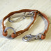 A simple design consisting of a thin rope with subtle stitching connected in the middle by an accent metal fitting.